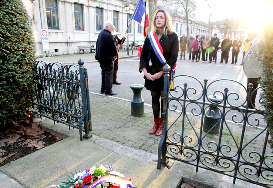 Puis, à 18 heures, une vingtaine de personnes se sont retrouvées devant le monument aux morts du cours Joubernon. Parmi elles, la députée Marie Pochon, et la future maire (officiellement élue le dimanche 22 mars, lire notre article), Athénaïs Kouidri, ainsi que deux porte-drapeaux.