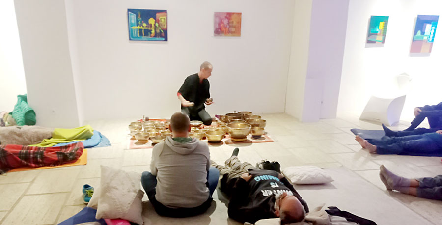 Wiljam Bhati a fait résonner ses bols chantants à la galerie crestoise.