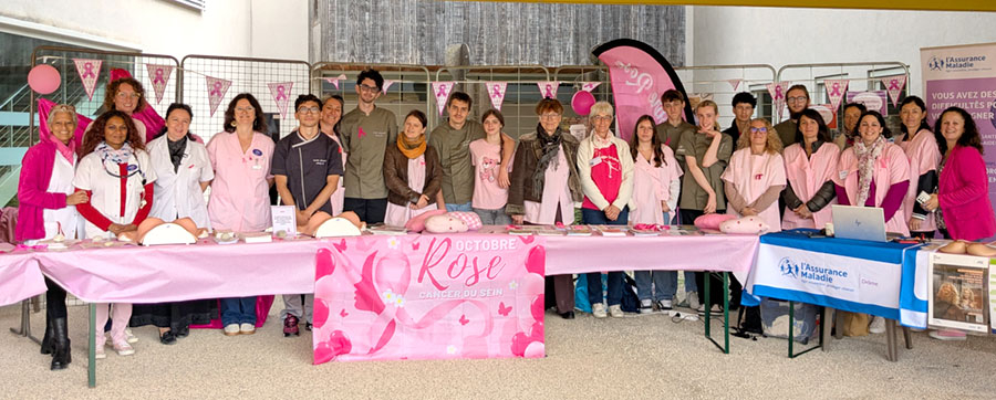 Durant la journée, sages-femmes, manipulatrices radio et représentante de l’assurance maladie ont ainsi répondu à des dizaines de femmes, ainsi qu’à des messieurs. Tous ont pu apprendre, grâce à des prothèses, à détecter la présence éventuelle d’une masse cancéreuse dans les seins, tout en se régalant des cookies, gâteaux tout en rose concoctés par les élèves du CAP production et service de restauration de la cité scolaire Armorin. « C’est bien, car toutes ces personnes vont ainsi diffuser l’information », se réjouit Isabelle, déléguée de la Ligue contre le cancer, dont l’antenne crestoise vient d’ouvrir l’année dernière. Or « plus tôt on détecte, plus tôt on soigne », insiste Amélie Baylet, de l’assurance maladie, qui invite toutes les femmes à bien consulter leur compte Ameli, où sont envoyées les invitations au dépistage. Il serait en effet dommage de passer à côté.