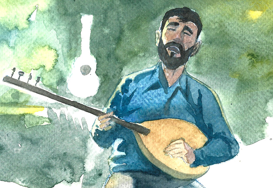 Le musicien yézidi, installé dans la vallée, raconte au saz la tragédie de son peuple.