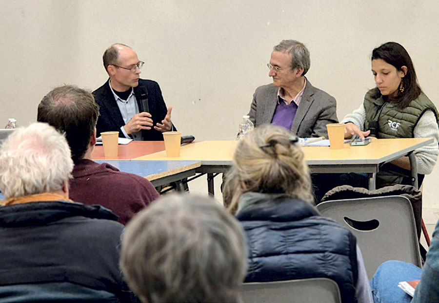 Pour cela, deux personnalités compétentes ont accepté de dialoguer : à ma droite, Hervé Mariton, ancien maire de Crest, homme politique conservateur connu de longue date en Val de Drôme. À ma gauche, Olivier de Schutter, professeur de droit international et rapporteur auprès de l’ONU sur l’extrême pauvreté et les droits humains. Résumer plus de 90 minutes d’échanges est une gageure. Aussi, nous allons essayer d’en souligner les grandes lignes...