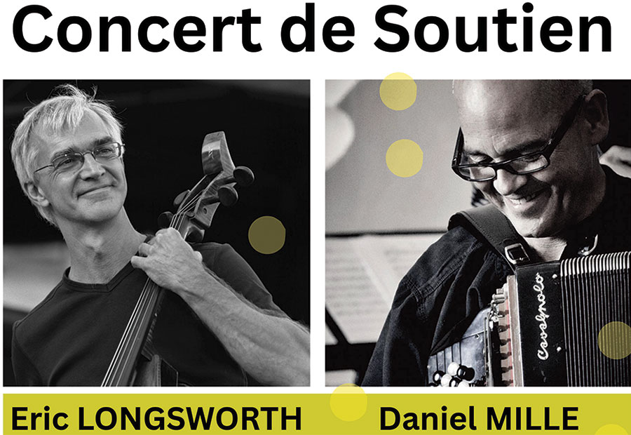 Daniel Mille (accordéoniste) et Éric Longsworth (violoncelliste), complices depuis de nombreuses années, vont nous offrir un concert exceptionnel et rare, et l’engagement de ces deux musiciens en faveur des droits humains n’est plus à démontrer.